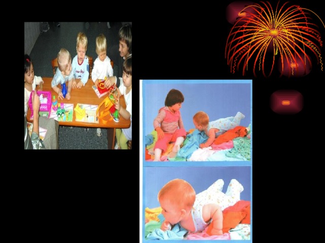 - Развитие всех психических процессов детей ясельного возраста осуществляется через предметную среду. Важно уметь правильно организовать ее, тогда это будет стимулировать психологическое развитие ребенка. Для этой цели предложите малышам "умные" игрушки : всевозможные коробочки, которые надо научиться открывать, закрывать, вкладывать друг в друга; лабиринты, по которым катается шарик; предметы, при нажатии кнопок издающие звуки, деревянные пазлы и т.п. Взрослому необходимо учитывать, что маленькие дети не умеют играть в игрушки вместе и еще долго будут этому учиться. Поэтому у каждого малыша должна быть возможность взять желаемую игрушку. Стоит особо отметить, что дети ясельного возраста требуют только индивидуальной обращенности к каждому: слова, сказанные всем, а не лично конкретному ребенку, для последнего не существуют. Приведём пример организации ясельного досуга: взрослый на детской площадке раскладывает разные игрушки и предлагает каждому по очереди выбрать одну и поиграть в неё. Как только ребята наигрались в данную игрушку, предложите им отнести игрушку на место и взять другую.