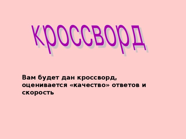 Вам будет дан кроссворд, оценивается «качество» ответов и скорость