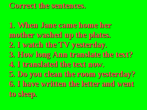 II. Revising the Past Simple, the Past Continuous and the Past Perfect tenses.
