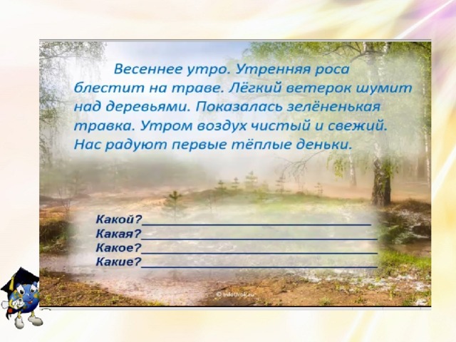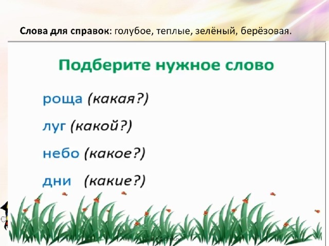 Слова для справок: ранняя, молодая, весёлые, голубые.