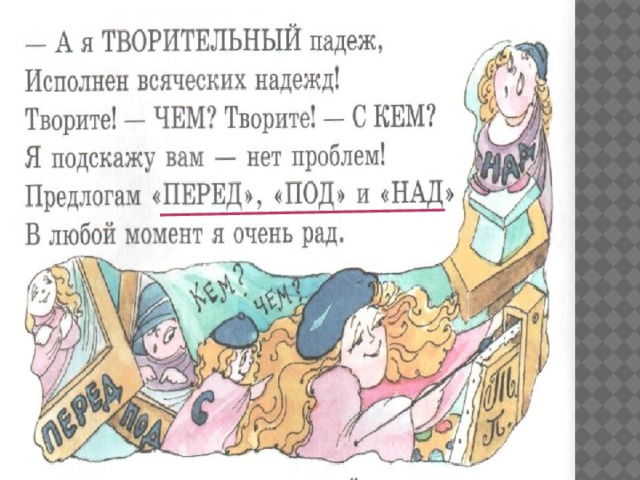 Т. с, со, за, перед под, кем? чем?