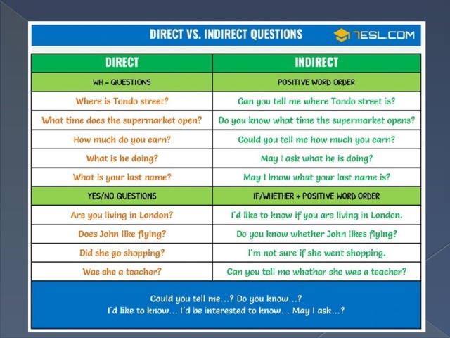 - При построении непрямого вопроса просто помните о двух простых правилах: