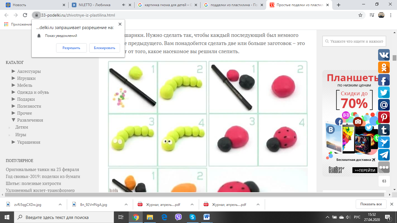 епка «Гусеница» Разрываем массу пластилина на несколько кусочков и катаем из нее шарики. Нужно сделать так, чтобы каждый последующий был немного меньше предыдущего.