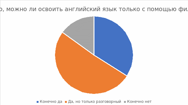 Половина респондентов полагают, что через просмотр фильмов и сериалов можно выучить только разговорный английский.