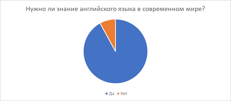 ….% опрошенных считают, что знание английского языка необходимо в современном мире, а ….% респондентов дали отрицательный ответ на данный вопрос.