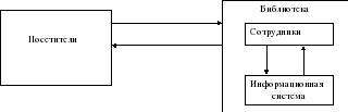 Проектируемая информационная система является средством информационного обеспечения работы сотрудников библиотеки, её можно рассматривать как подсистему «Библиотеки». Схема такой системы выглядит следующим образом: