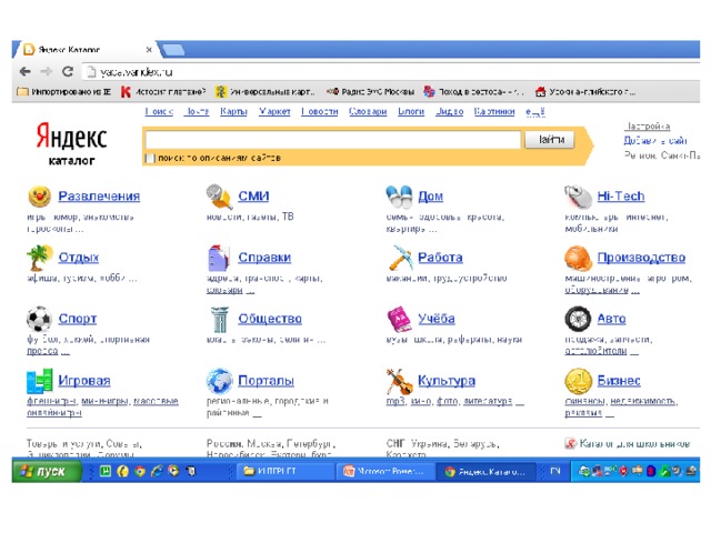 Тематические разделы верхнего уровня, например: Интернет, Компьютеры, Наука и образование и т. д., содержат вложенные каталоги .
