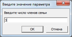 Выполните запрос. При выполнении откроется диалоговое окно для ввода значения параметра. Введите одно из значений в поле Состав_семьи, которые есть в Вашей таблице СЕМЬИ (например, 3). Введенное значение будет использовано в качестве критерия отбора записей из таблицы.