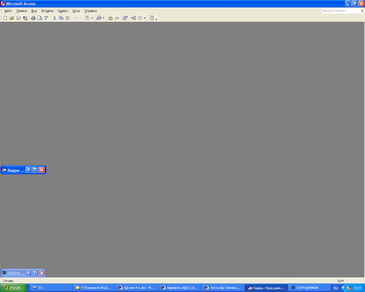 Запустите программу Microsoft Access (Пуск – Программы – Microsoft Access). Выполните в меню Файл – Создать и затем выберите в области задач окна программы пункт Новая база данных.