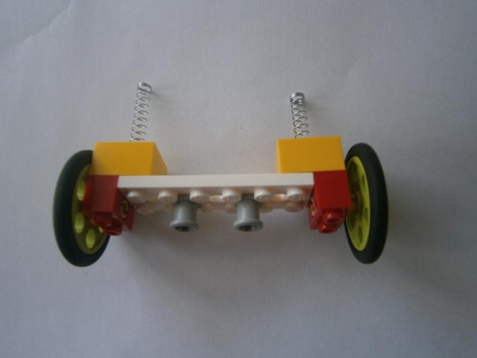 Ручек потребуется две, а именно пружины из них. Итак, берём две пружины, берём конструктор "Lego Wedo" и собираем вот такие две конструкции.