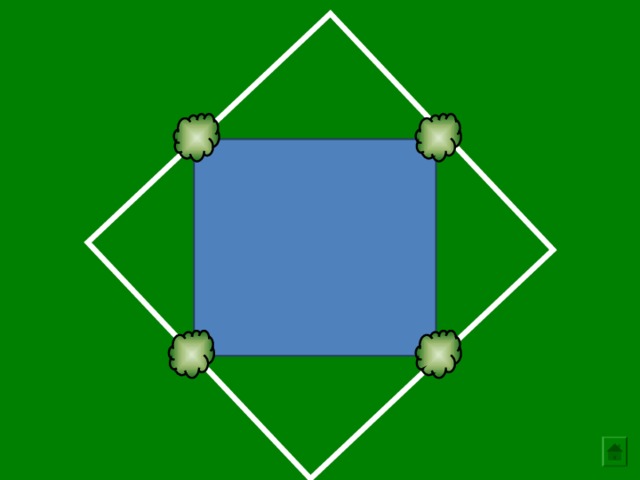 Есть квадратный пруд По его углам возле воды растут четыре старых дуба. Пруд понадобилось расширить, сделав его в два раза больше по площади, сохранив, однако, квадратную форму. Но старые дубы трогать не хотят. Выполнимо ли это задание?
