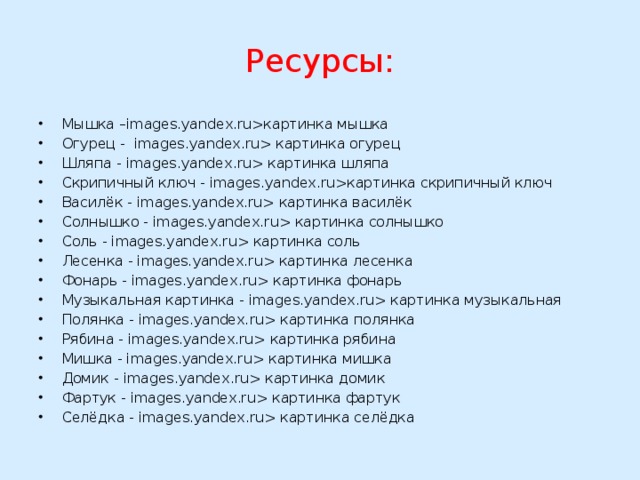картинка мышка Огурец - images.yandex.ru картинка огурец Шляпа - images.yandex.ru картинка шляпа Скрипичный ключ - images.yandex.ruкартинка скрипичный ключ Василёк - images.yandex.ru картинка василёк Солнышко - images.yandex.ru картинка солнышко Соль - images.yandex.ru картинка соль Лесенка - images.yandex.ru картинка лесенка Фонарь - images.yandex.ru картинка фонарь Музыкальная картинка - images.yandex.ru картинка музыкальная Полянка - images.yandex.ru картинка полянка Рябина - images.yandex.ru картинка рябина Мишка - images.yandex.ru картинка мишка Домик - images.yandex.ru картинка домик Фартук - images.yandex.ru картинка фартук Селёдка - images.yandex.ru картинка селёдка " width="640"