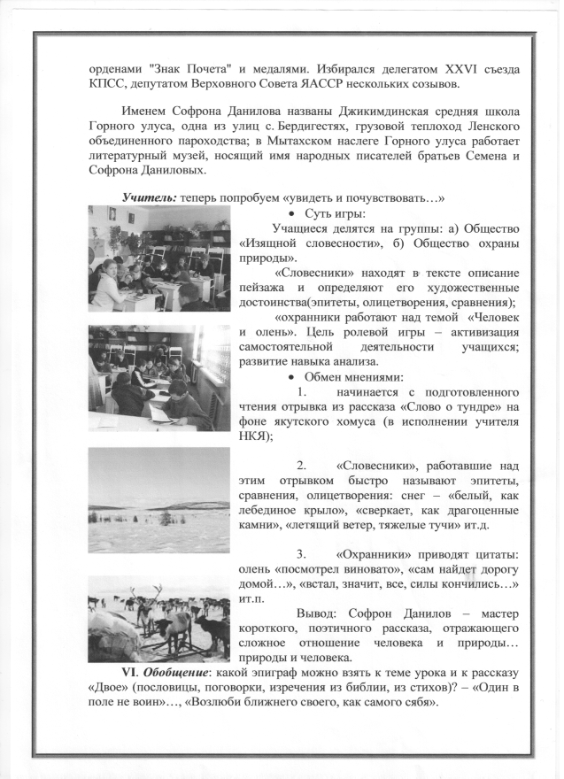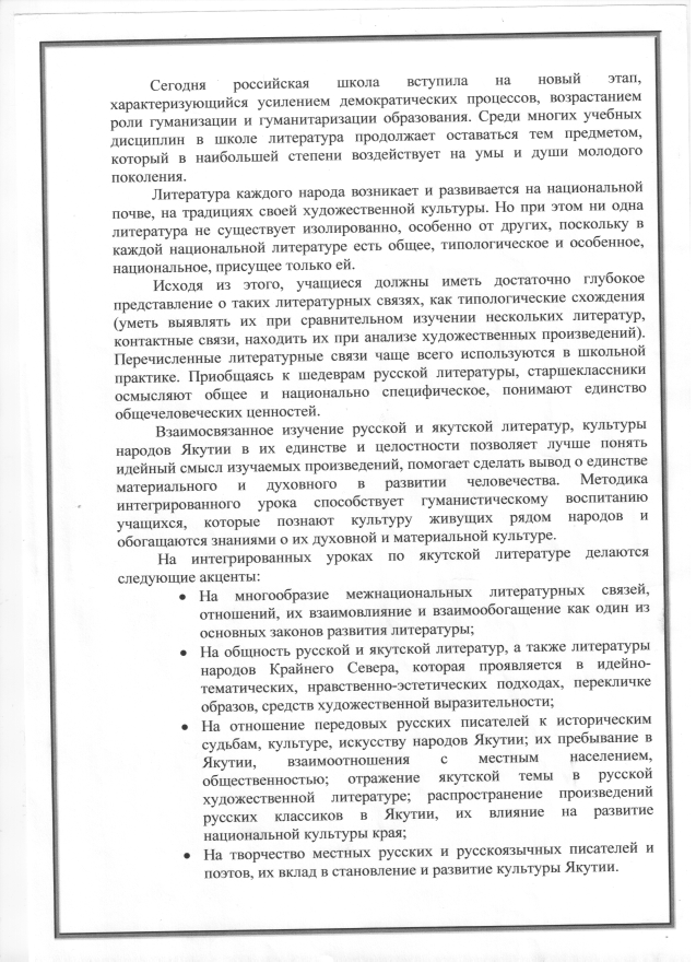 На интегрированных уроках по якутской литературе делаются следующие акценты:
