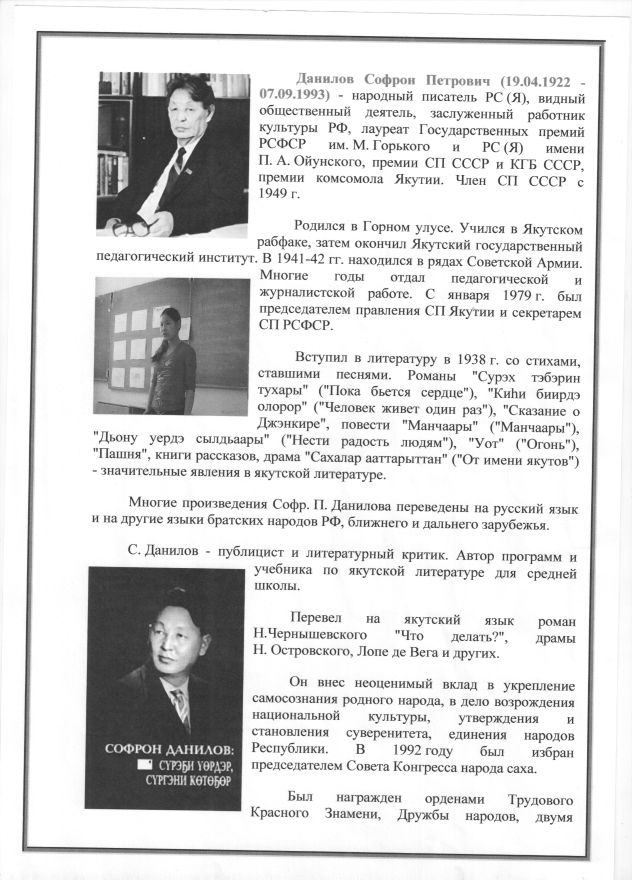 -На творчество местных русских и русскоязычных писателей и поэтов, их вклад в становление и развитие культуры Якутии.
