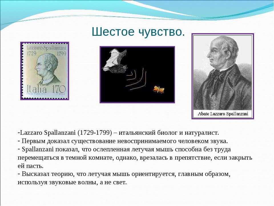 | https://www.kommersant.ru/doc/3985271 УЗИ аббата Спалланцани 225 лет назад Ладзаро Спалланцани открыл у летучих мышей способность к эхолокации