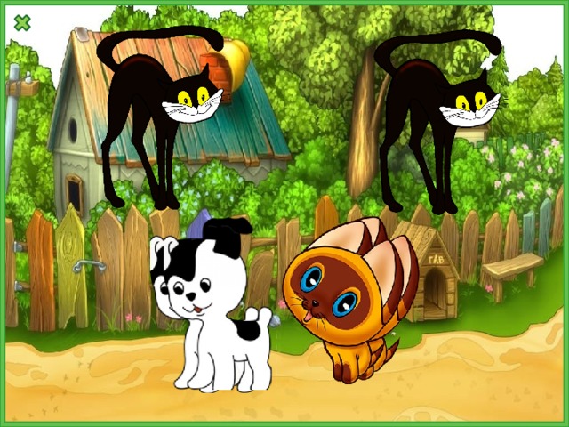 Наши верные друзья, щенок Шарик и котенок Гав,