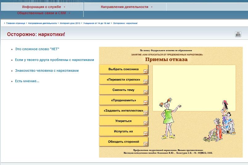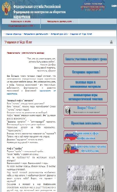 Цель урока:1. Познакомить школьников со специальным разделом на официальном сайте Федеральной службы Российской Федерации по контролю за оборотом наркотиков (http://fskn.gov.ru), иными интернет - ресурсами антинаркотической направленности, а также научить ими пользоваться при возникающей необходимости.