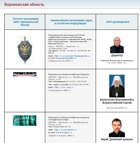По такой же схеме, с помощью интерактивной карты, вы можете получить информацию об общественных организациях и молодежных движениях страны, в том числе и нашего Центрального региона, и конкретно Воронежской области.