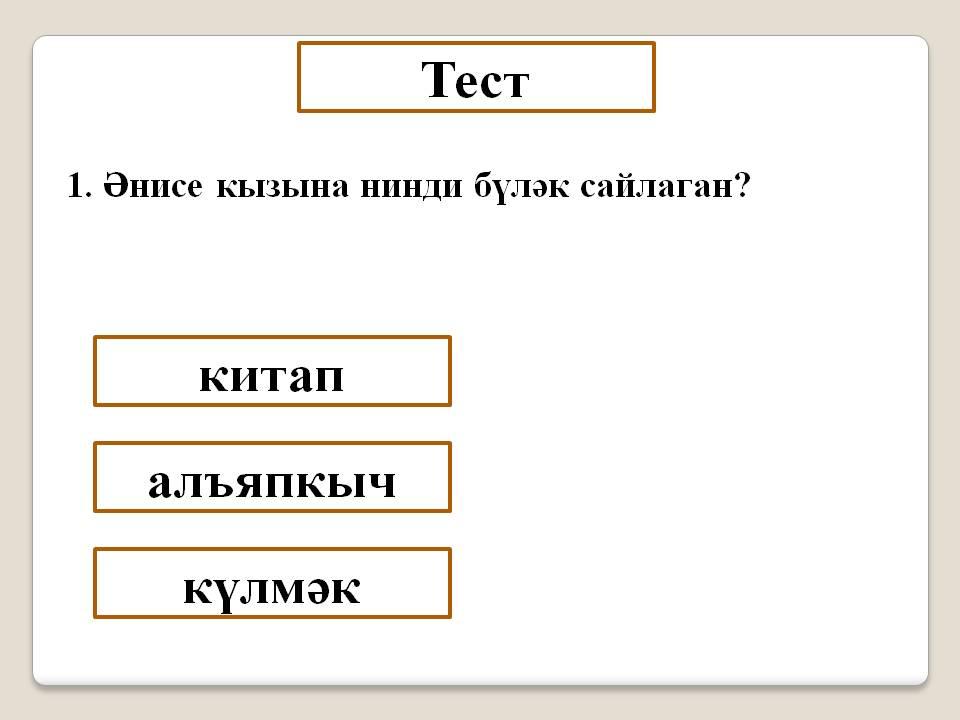 III. Тест сорауларына җаваплар бирү.