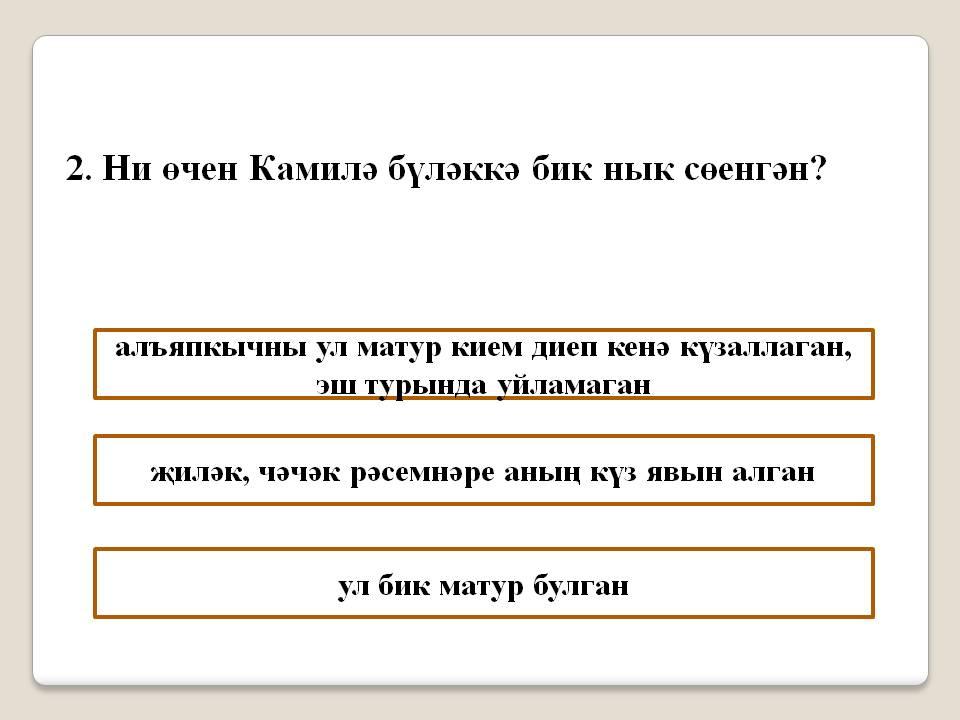 2. Ни өчен Камилә бүләккә бик нык сөенгән?
