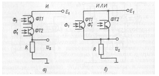 Входной электрический сигнал (характеризующийся силой тока I1 или напряжением U1) преобразуется источником излучения 1 в световой (поток света Ф1), который передается затем по оптическому каналу 2 к фотоприемнику 3. Фотоприемник осуществляет обратное превращение светового сигнала в электрический I2, U2. Среда оптического канала может быть управляемой (например обладать электрооптическими свойствами), что отражено и рис. 10 введением в схему устройства управления 4, которое преобразует световой поток Ф1 в поток Ф2. Для согласования параметров оптронов с другими элементами электронных схем могут использоваться дополнительные входные и выходные устройства.