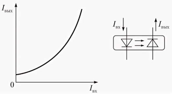 Принцип действия оптронов: в излучателе энергия электрического сигнала преобразуется в световую, в фотоприёмнике, наоборот, световой сигнал вызывает электрический отклик, т.е. в оптронах происходит двойное преобразование энергии.