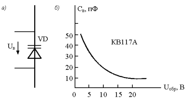 Рис. 6. Варикапы и их обозначение на принципиальных схемах.