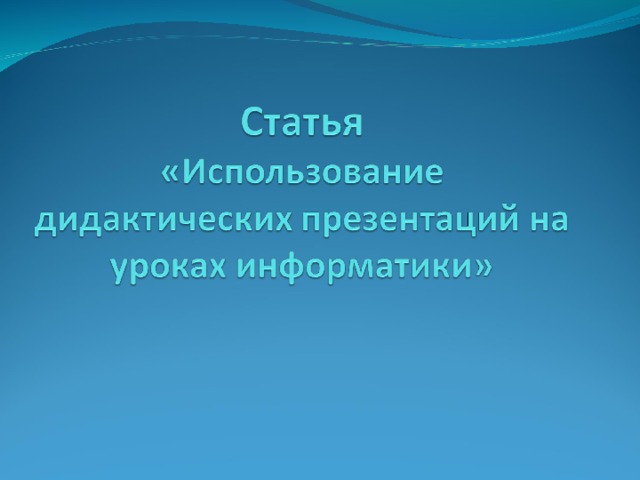 Рассмотреть целесообразность использования дидактических презентаций на уроках информатики.