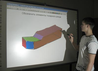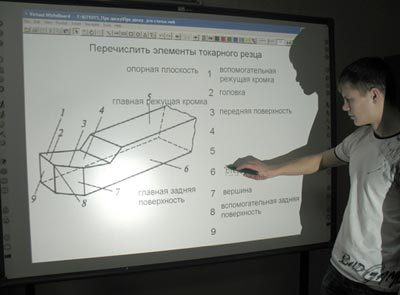 Применение интерактивной доски на уроках общеобразовательных дисциплин таких, как информатика, математика, иностранный язык, физика или химия понятны, но лицей является учреждением начального профессионального образования и поэтому встал вопрос: «Как применить это устройство на уроках спецдисциплин и производственного обучения?».