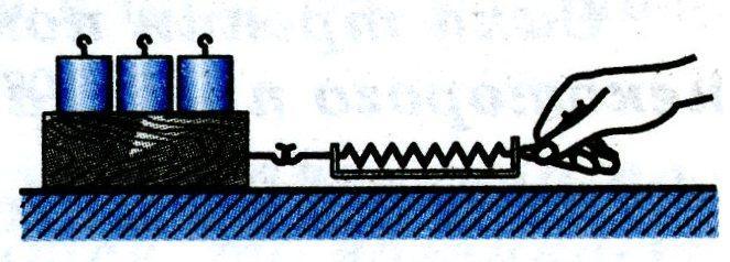 Пусть на бруске по-прежнему находятся грузы. Действуйте на брусок динамометром, постепенно наращивая силу.