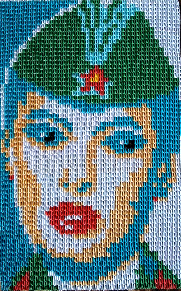 Прежде чем приступить к созданию проекта, нужна была картина по клеточкам. За основу я взяла японский кроссворд. Посчитала, сколько модулей различных цветов понадобиться. На изготовление всей картины нужно 5200 модулей. На лицевую сторону потребуется: 688 белых модулей, красных 103, темно-голубых 745, зелёных 596, чёрных 6, кремовых 388, жёлтых 3, светло-голубых 112. На обратную сторону потребуется только белые модули, их нужно 2665 штук.