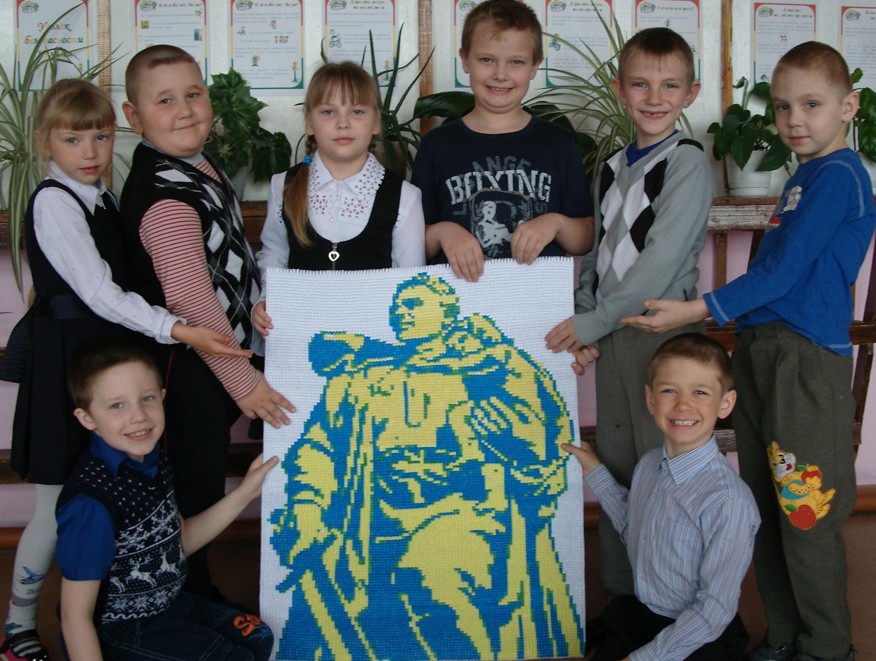 Первой картиной была «Солдат-освободитель», которую в первом классе мы выполняли с помощью учителя. Над ней мы работали полгода. На ее изготовление ушло 36 тысяч модулей. Картину изготовили к празднику 9 Мая и подарили в музей нашего села. Теперь мы сами можем изготавливать такие картины. В этом году исполняется 70 лет Победы и я решила создать модульную картину «Девушка солдат».