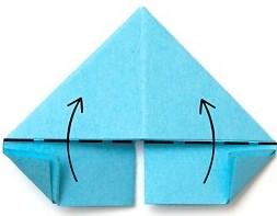 8. Снова сложить маленькие треугольники по намечённым линиям и поднять края вверх. ![]()
