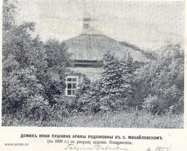 «Любезный мой друг Александр Сергеевич, я получила ваше письмо и деньги, которые вы мне прислали. За все ваши милости я вам всем благодарна — вы у меня беспрестанно в сердце и на уме, и только когда засну, то забуду вас и ваши милости ко мне. Ваша любезная сестрица тоже меня не забывает. Ваше обещание к нам побывать летом меня очень радует. Приезжай, мой ангел, к нам в Михайловское, всех лошадей на дорогу выставлю. Наши в Петербурге летом не будут: они все едут непременно в Ревель — я вас буду ожидать и молить Бога, чтоб он дал нам свидеться... Прощайте, мой батюшка, Александр Сергеевич. За ваше здоровье я просвиру вынула и молебен отслужила, поживи, дружочек, хорошенько, самому слюбится. Я, слава богу, здорова, цалую ваши ручки и остаюсь вас многолюбящая няня ваша Арина Родионовна».