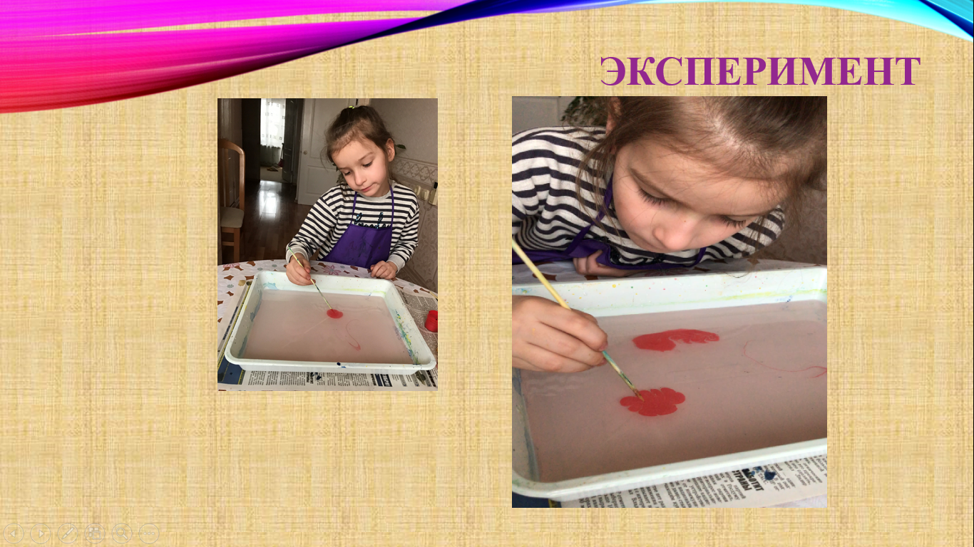 Теперь я знаю, краски для рисования должны быть жидкими, тогда они смогут растекаться, а вода – густой, чтобы удерживать краски на поверхности.