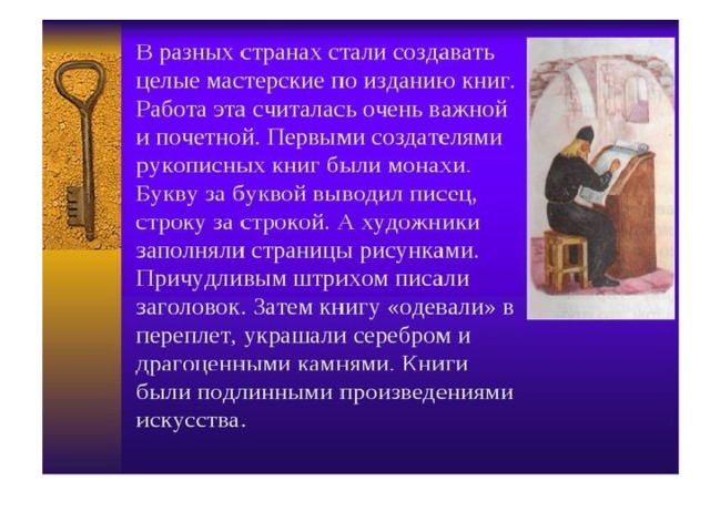 В презентации говорится о создании книги. С ее основы и до нашего времени.