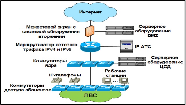 - Физическая сеть (пассивное и активное оборудование ЛВС);