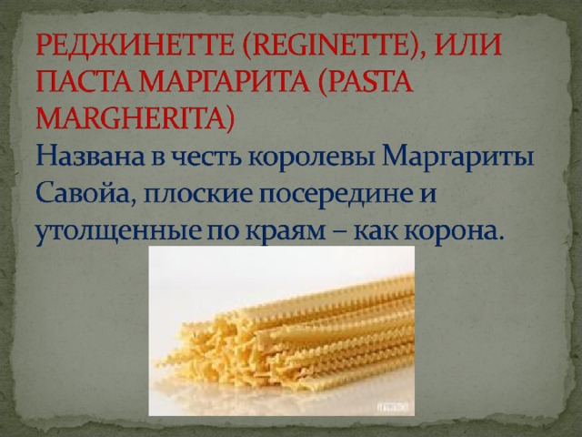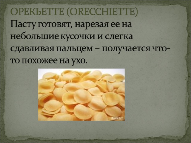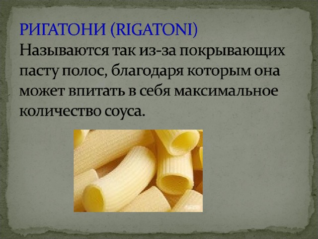 - Короткая необычная паста, нашедшая применение в рагу, салатах или как самостоятельное блюдо.