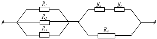 20.Определить общее сопротивление цепи на рисунке. (R1 = R2 = R3 = 9 Ом; R4 = R5 = 2 Ом; R6 = 4 Ом).