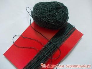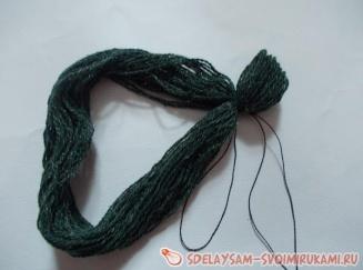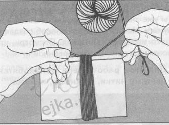 1.Намотать пучок пряжи на картон или на подушку для плетения