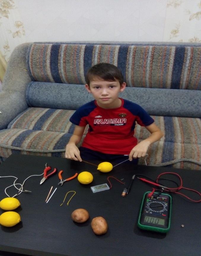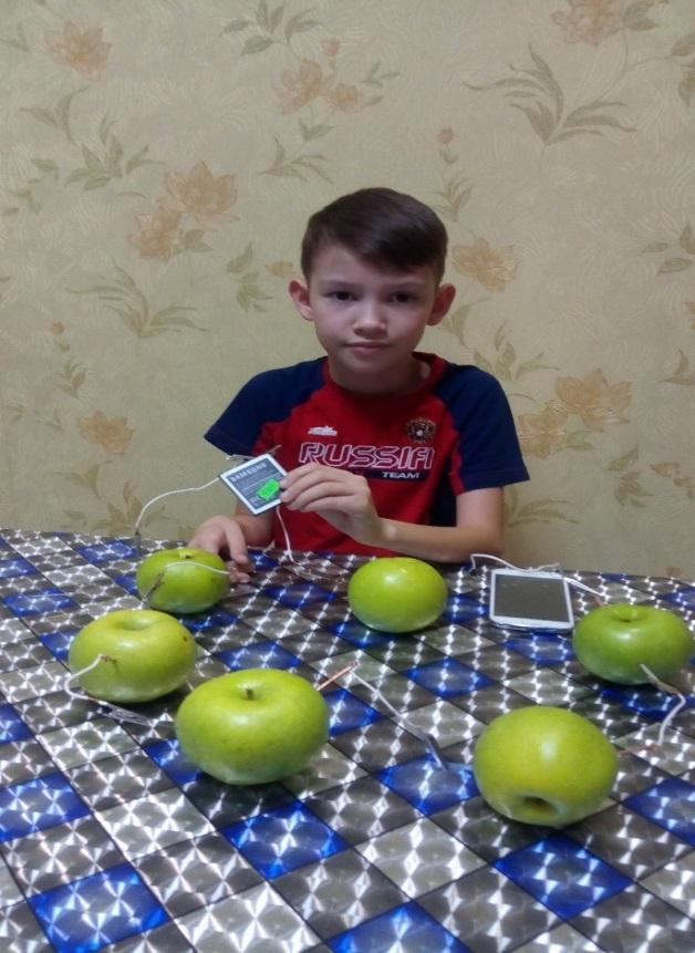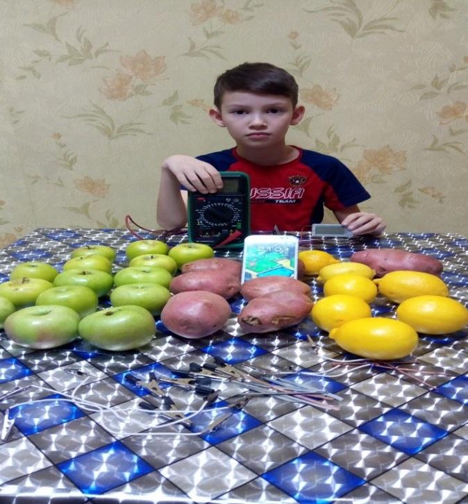 Гипотеза нашего исследования подтвердилась частично: батарейки из лимонов, яблок и картофеля могут быть заменителем электрического тока, но на довольно не продолжительное время. С точки зрения экономии – они конечно не выгодны, т.к. для того, чтобы зажечь светодиод потребуется целых семь яблок или 5 лимонов. Но с точки зрения экологии наша гипотеза подтверждается, т.к. фабричные батарейки очень токсичны, их нельзя просто выбрасывать, необходима специальная утилизация батареек. Мои яблочные и лимонные батарейки совершенно безопасны для здоровья. Это способ вторичного использования материала с целью сохранения экологического состояния окружающей среды. На все заявленные мною проблемные вопросы я нашёл ответ. Полученные мною результаты о живой природе можно продемонстрировать на уроках «окружающего мира», а знания об электрическом токе пригодятся в дальнейшей учебе.
