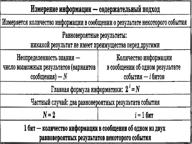 - В каких случаях и по какой формуле можно вычислить количество информации, содержащейся в сообщении, используя содержательный подход?