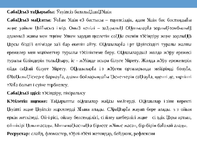 Сабақтың тақырыбы: Қауіпсіз балалық шақ үшін