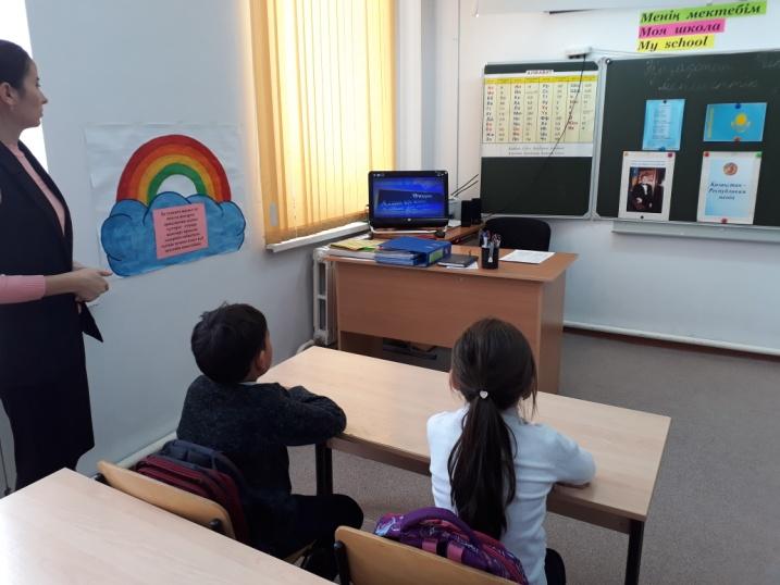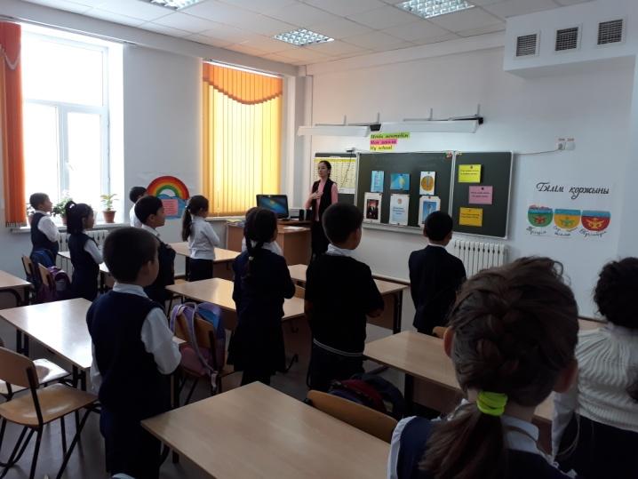 І. Ұйымдастыру: Оқушылардың зейінін сабаққа аудару. Қазақстан Республикасының Мемлекеттік гимні орындау.