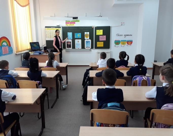 Мемлекеттік рәміздердің белгілері туралы айтады, оқушылар қай белгі туралы екенін анықтайды.
