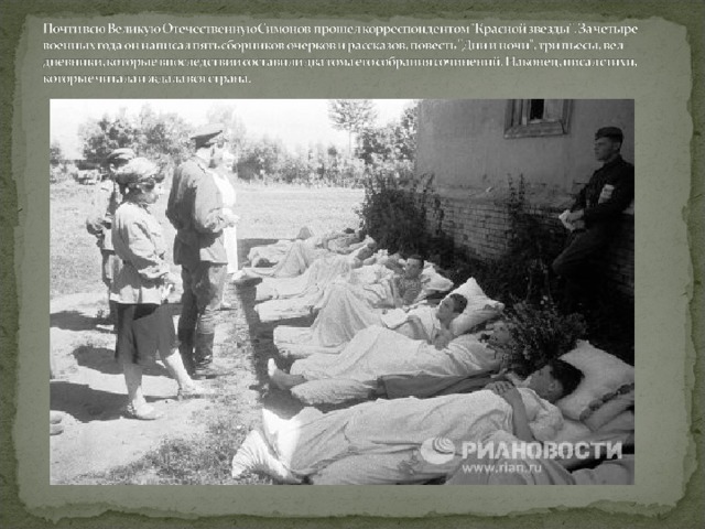Эта презентация о творчестве К.Симанова. Предназначена для просмотра на уроках литературы.для уч-ся 7 класса.