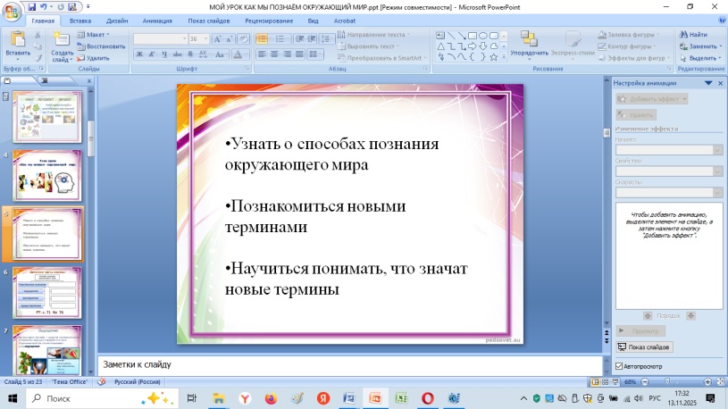 | «Как мы познаём окружающий мир» Открыли тетрадочки и записали 14 ноября, «Как мы познаём окружающий мир» |