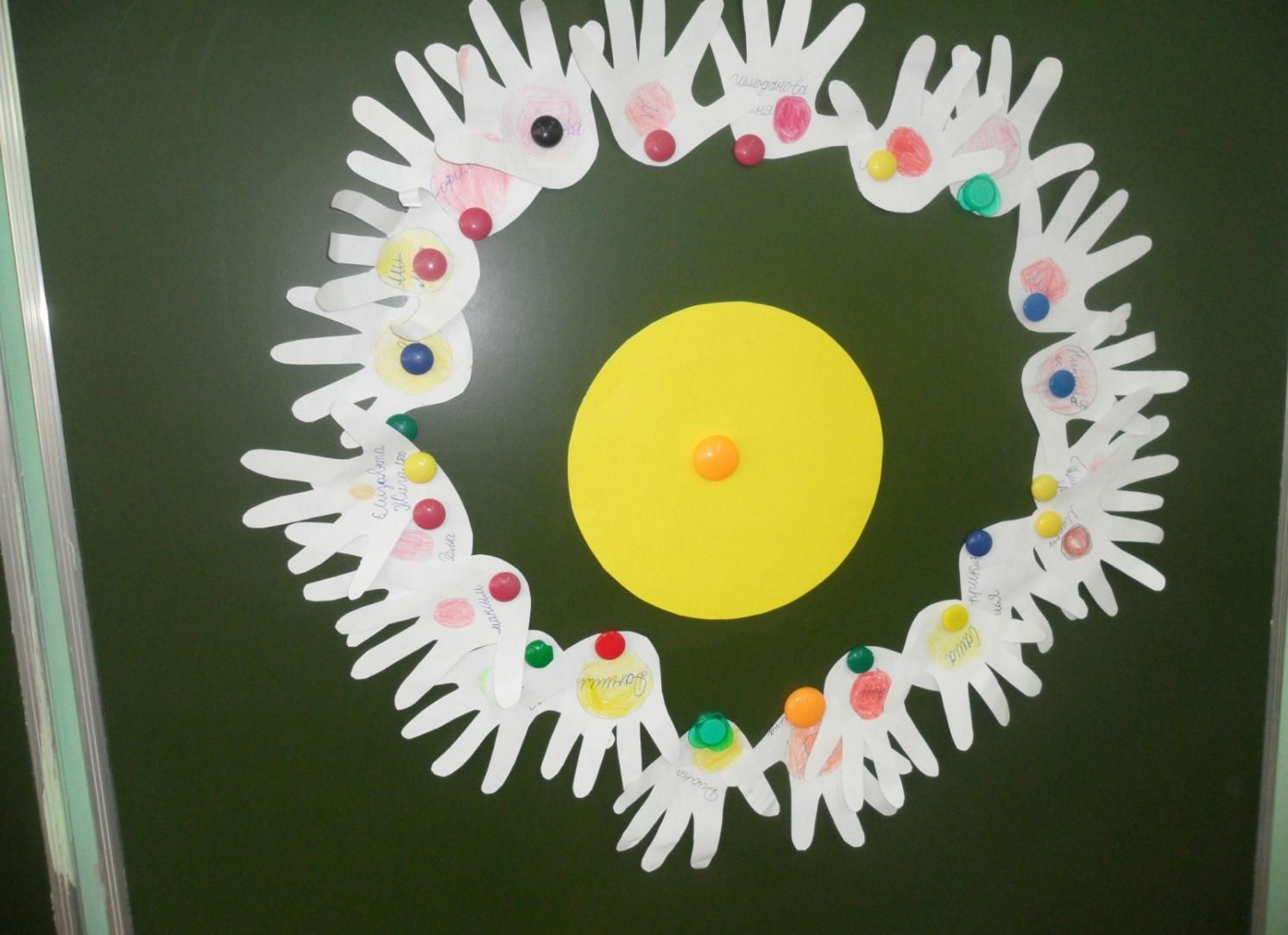 Из наших ладошек сделаем солнышко и посмотрим, над чем нужно поработать на следующем уроке.