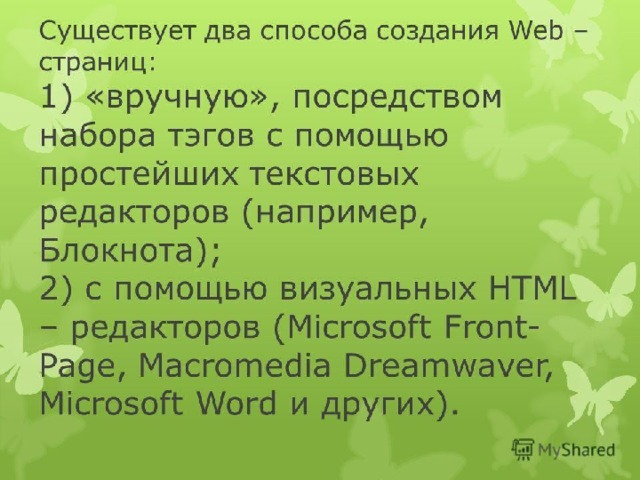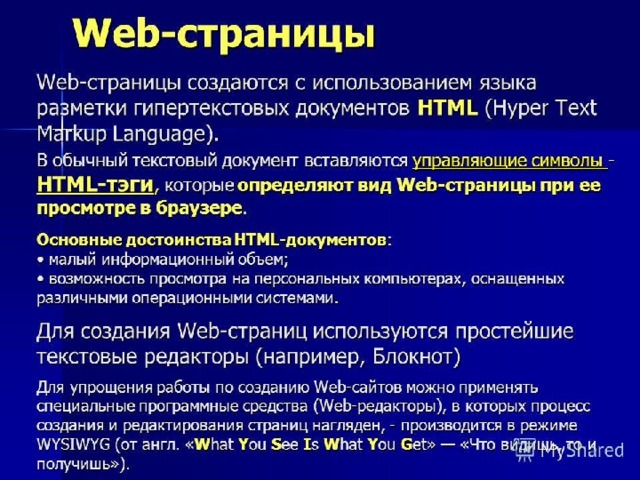 Веб страницы создаются с использованием языка HTML