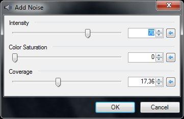 (Эффекты → Шум → Добавить шум)". В окне эффекта опции выставляем так, как на скрине: